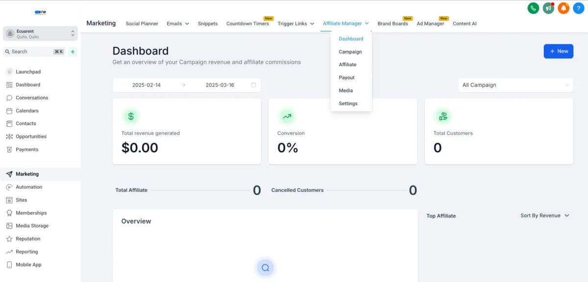 Once published, your affiliate campaign is active. Congratulations – you’ve created an affiliate program in GoHighLevel!