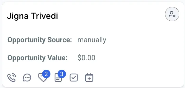 Tag Icon – Use this icon to add or manage tags associated with the opportunity. Tags help categorize and organize your leads.