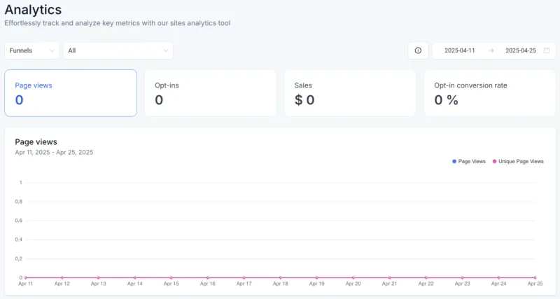 Opt-ins / Sales: Depending on what your page does, it might show how many opt-ins (for funnels capturing leads) or sales (for a funnel or store selling something) occurred.