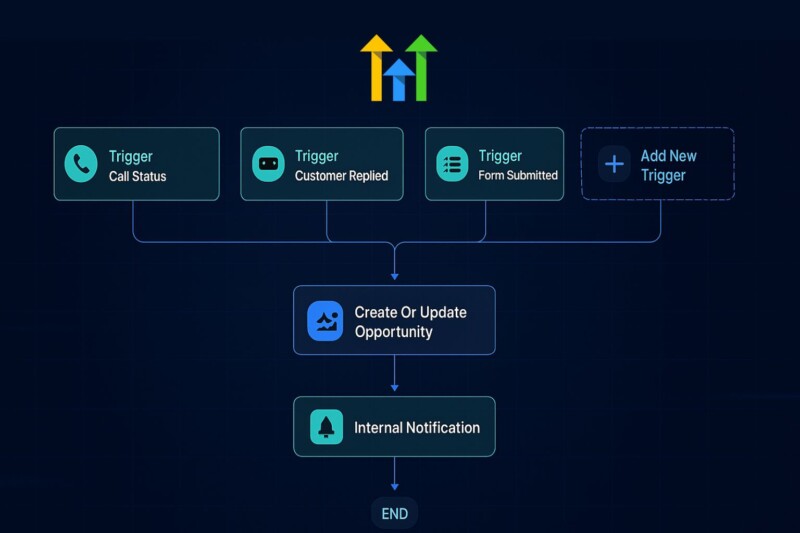 Pipeline (CRM) Triggers: Fire when deals (opportunities) change in your pipeline. Examples: a new opportunity is added to a sales pipeline, an existing deal moves to a different stage, or a deal is marked as “Won” or “Lost.”